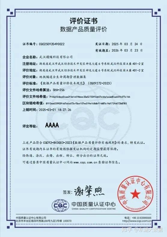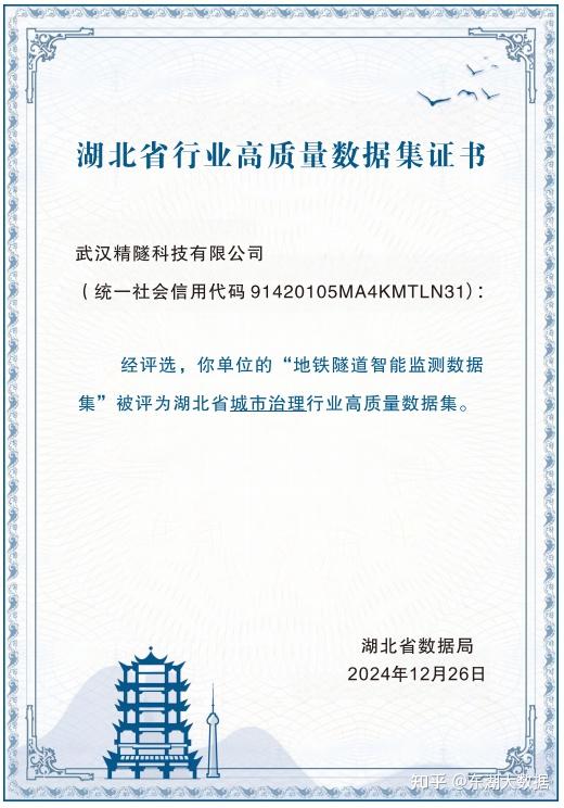 2025年1月,湖北省数据局发布首批10个行业高质量数据集,精隧科技“地铁隧道全生命周期管理数据集”赫然在列,成为全国首个地铁隧道数据资产入表标杆案例。